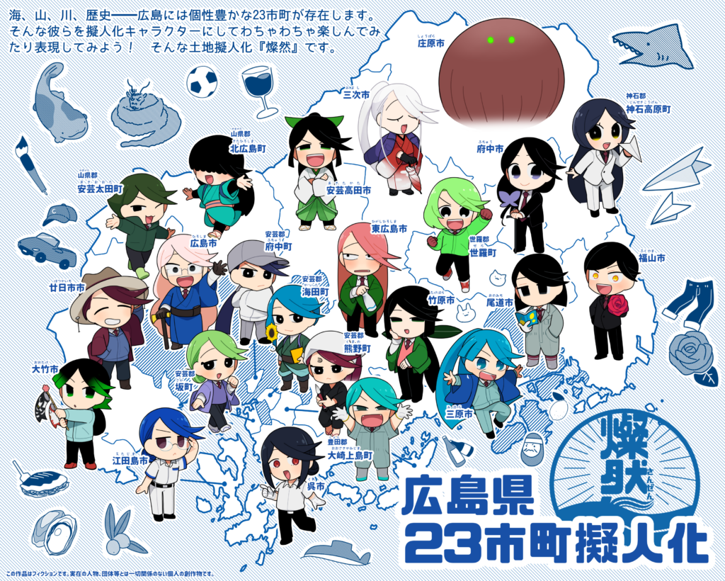 興味深くておもしろい広島県の魅力を、キャラクター表現とともに楽しんでいくための創作です。