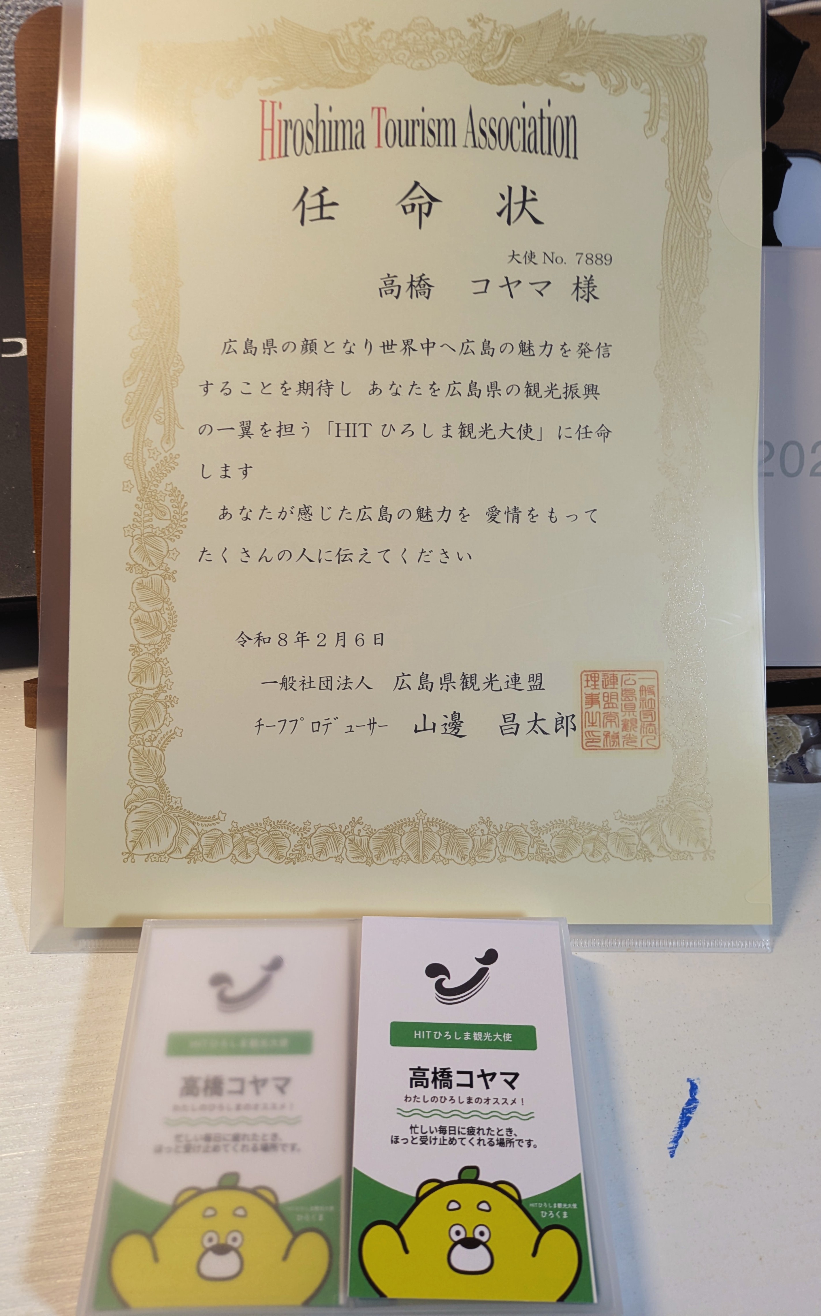 ひろしま観光大使の任命状と名刺をいただきました〜〜!!